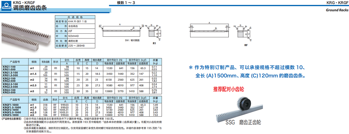 ② KRG 系列研磨齒條是安裝面經(jīng)過研磨加工的高精度產(chǎn)品。